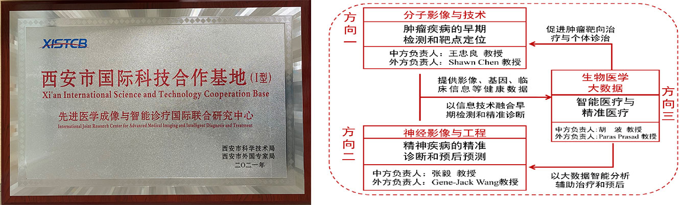 先进医学成像与智能诊疗国际联合研究中心围绕国家“健康中国”“脑科学”等重大战略需求,面向人民生命健康,立足国家及区域新兴产业布局,针对肿瘤与脑疾病的早期诊断与治疗关键问题,把握成像技术前沿与影像市场机遇,开展与临床医学、人工智能、生物技术等领域的交叉研究,形成了聚焦肿瘤早期检测的分子影像技术、聚焦信息技术与传统中医针刺机理研究的神经影像与工程、聚焦智能医疗与人工智能的生物医学大数据等三个研究方向,致力于吸引海外高层次人才团队来校发展,深化国际科技合作与交流,提升国际科技合作的成果产出。