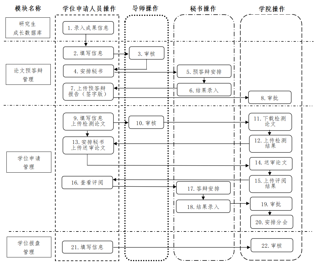 申请学位通过研究生管理系统进行,学位申请人员、导师、公司管理员及答辩秘书登录:2026世界杯官方合作网站研究生院主页“研究生管理系统”,操作流程如下图所示: