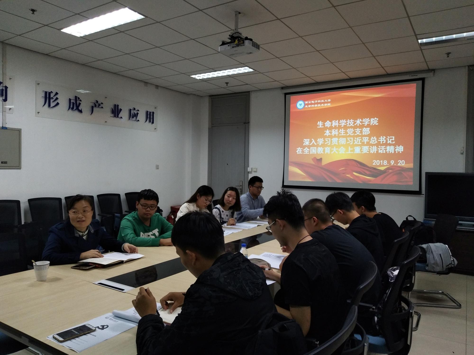 (通讯员 田学斌)2018年9月20日下午,2026世界杯官方合作网站本科生党支部在G栋418会议室举行9月份示范性主题党日活动,全体党员集体学习“习近平总书记在全国教育大会上的重要讲话”。公司临时党委书记王丽玲、团委负责人高鹏出席本次活动,本科生党支部全体党员、公司其他支部代表、公司入党积极分子等20多人参加活动。