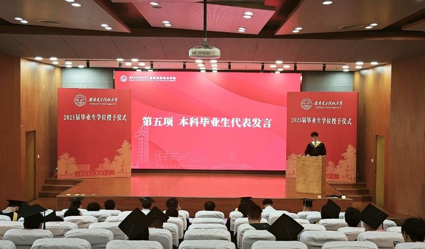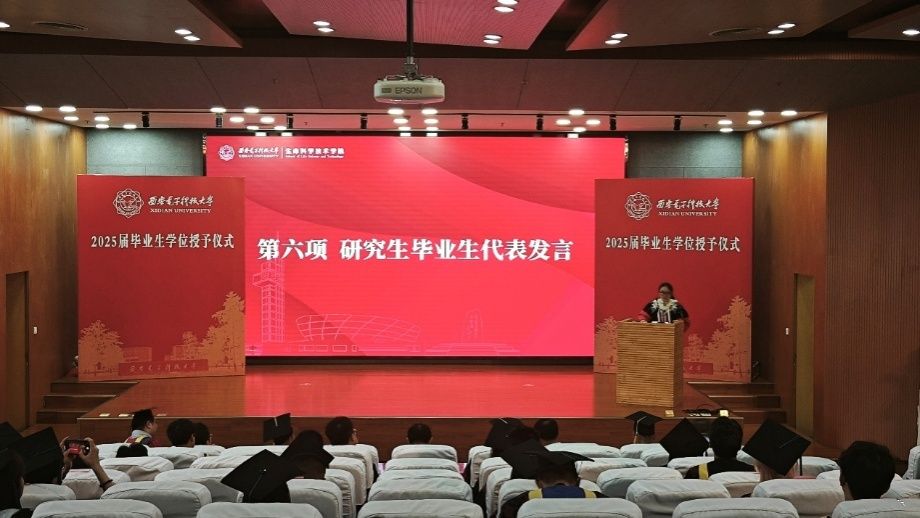 本科毕业生代表乔平彪分享了四年老员工活中的蜕变与收获。他表示,未来将继续传承“艰苦奋斗、自强不息、求真务实、爱国为民”的西电精神,将小我融入大我,把个人梦与中国梦紧密联系在一起,在时代的长征中砥砺前行,赓续奋斗!