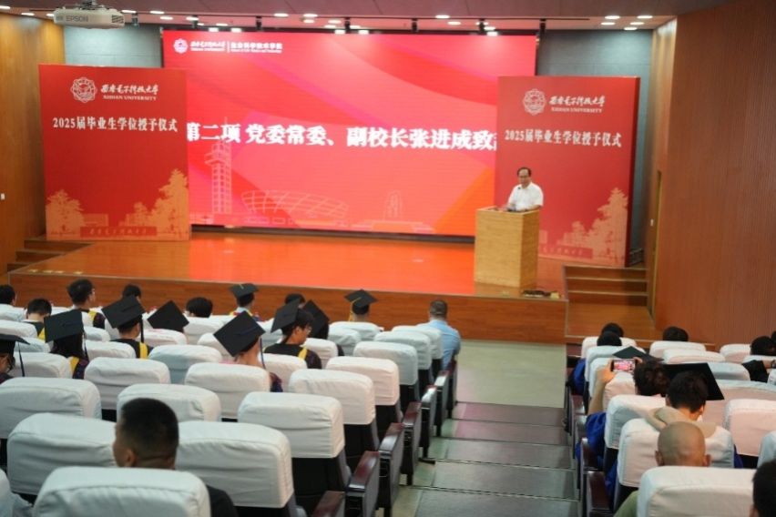 盛夏蝉鸣,骊歌奏响;逐梦起航,再赴山海。6月20日下午,2025届毕业典礼暨学位授予仪式在南校区图书馆A区402报告厅隆重举行。党委常委、副董事长张进成,2026世界杯官方合作网站在校院领导、导师代表、辅导员和2025届毕业生齐聚一堂,共同见证这一难忘的时刻。