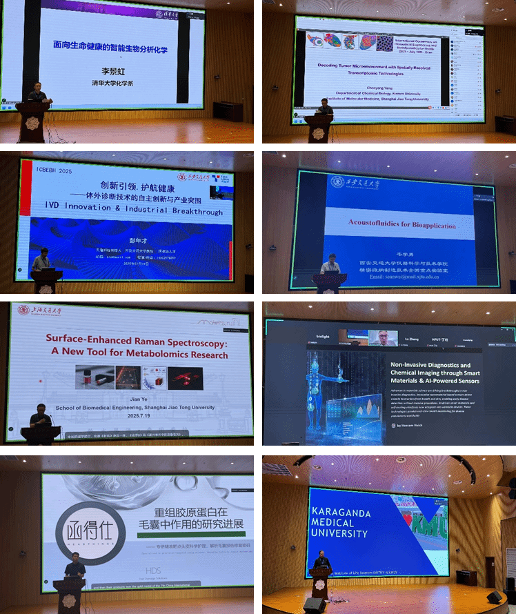 本次会议围绕八大主题展开深入探讨:分子影像、神经影像、体外诊断、微纳米技术、生物传感器、生物医学工程、生物信息学及生命健康。会议形式多样,包括主旨报告、分论坛、博士生论坛、专题讨论。主旨报告环节亮点纷呈,清华大学李景虹院士分享了智能生物分析化学的最新进展,厦门大学杨朝勇教授探讨了空间分辨转录组技术在肿瘤微环境研究中的应用,西安交通大学彭年才教授和韦学勇教授分别介绍了分子诊断平台与声流控技术的创新,上海交通大学叶坚教授和以色列理工公司Hossam Haick教授关于表面增强拉曼光谱与无创诊断技术的最新进展。陈张源教授的报告不仅展示了重组胶原蛋白在毛囊修复中的突破性进展,还体现了生物医学工程与生命健康研究的深度融合。这些报告为与会者提供了深刻的学术启发。此外,来自哈萨克斯坦卡拉干达医科大学的Dmitriy Klyuyev教授介绍了该校概况,为一带一路国际合作搭建了桥梁。