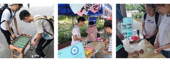 除了用展板宣传心理健康知识外,为了让同学们释放压力、缓解情绪,以积极饱满的热情投身于生活、学习中,实践部组织开展了各式各样新鲜有趣的游戏。“德国心脏病”紧张刺激的游戏体验和胜利后的欢呼都给我们带来不一样的乐趣;五子棋锻炼我们的心态,提高我们的身心健康;桌式足球也为我们解压……游戏之余,送上我们的小礼品,用不一样的方式给同学们解压,让他们认识到心理健康的重要性。