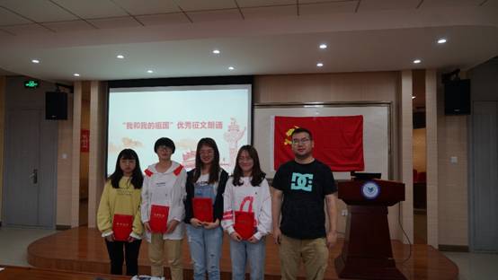 最后,经过在场员工评委的打分评选出了一二三等奖。闫胚娆同学从现实生活入手,文章平易近人却触动人心,在演讲中情真意切,获得一等奖;夏冉同学以昂扬向上的文笔和抑扬顿挫的朗诵斩获二等奖;苗媛媛和安琪有感染力的朗诵获得了三等奖。随后,由辅导员陈伟燊亲自为几位获奖同学进行颁奖。在一曲《我和我的祖国》合唱中,此次“我和我的祖国”主题朗诵比赛圆满结束。