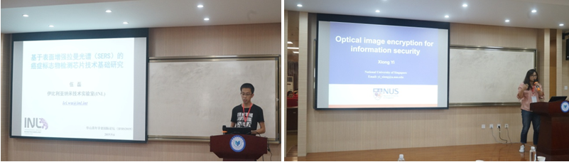 接着,伍磊博士做了题为《基于表面增强拉曼光谱的癌症标志物检测芯片技术基础研究》的学术报告,拉开本次论坛会的序幕,熊怡、施春林、李蓓、黄智勤、曹启晨、张建波、郑梅珍7位海外学者紧随其后逐次为公司师生做了精彩的学术报告,报告涉及图像加密、肿瘤治疗、数据分析等多个领域。