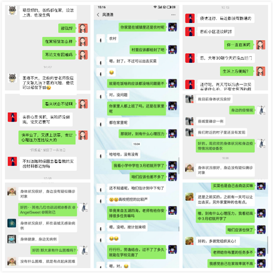 党支部根据公司党委相关疫情安排召开支委会,线上调查询问团队支部所有员工所在地等信息,对身处湖北以及河南等疫情重灾区的员工及时询问员工心理以及身体等状况,对于生活学习困难员工实施系列帮扶,资源共享;“停课不停学”,及时调查员工网络等情况是否满足学习、科研工作需求,对有困难的员工提供流量等支持,在有限条件下,确保员工能够正常开展学习科研相关工作。