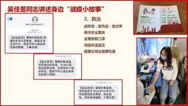 之后,每一位党员以ppt分享的形式,讲述了发生在自己身边的“战疫”小故事。从2020年之初到现在,新冠病毒全球感染人数已超过一千万,并且还在持续增加。但我们国家,在中国共产党的领导下,共下一盘棋,共打一场仗,在短短的三个月里,已经取得了“战疫”的决定性胜利。在这场没有硝烟的战斗中,无论是冲锋前线的“战士”,还是服从指挥的群众,每一位都是亲历者。也许是亲身经历,也许是身边的事,总有一份感动,总有一份温暖,让我们驻足,让我们动容,也让我们自豪。