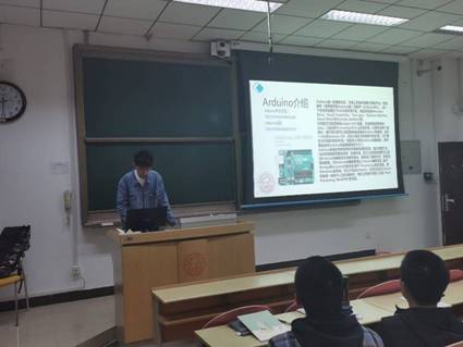 培训开始,王珂捷学长向同学们介绍了Arduino并分享其中文社区与仿真模拟网站,讲述了Arduino的入门途径与练习平台。