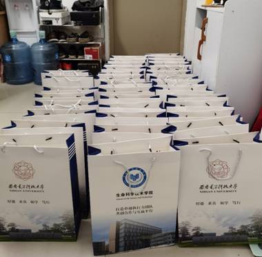 38份考研大礼包,每一份都承载着全院师生最真挚的期许与祝福。大礼包里包含一张贺卡和一份考试用具,考试用具大到文具袋,小至替换笔芯、橡皮擦……都是老师们精挑细选,寄托着对员工的深深关怀和期待。贺卡上印有西电生科院的标志,内容则是由本科生党支部成员书写,“提笔安天下,跨马定乾坤”、“前程似锦,来日方长”、“十年寒窗中破壁,锦绣前程自此辟”……贺卡上一句句暖心的话语,让同学们在这寒冷的冬天倍感温暖。
