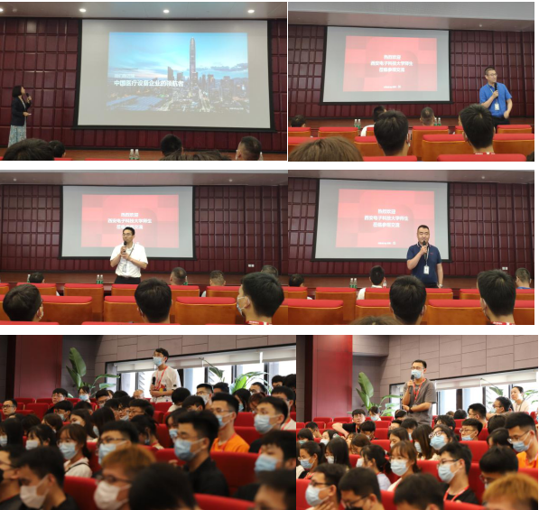 接下来,郭艳美为同学们作了一场生动又深刻的报告。郭艳美从自身成长经历出发,介绍了她的职业规划,以及最终选择迈瑞医疗的缘由。除此之外,她还为同学们从迈瑞的发展历程、市场情况、产品解决方案以及在全球疫情期间迈瑞的产品供应链四个方面详细介绍了迈瑞公司。随后,公司各部门负责人依次进行了部门介绍,并对同学们的提问进行了热情而详细的解答。