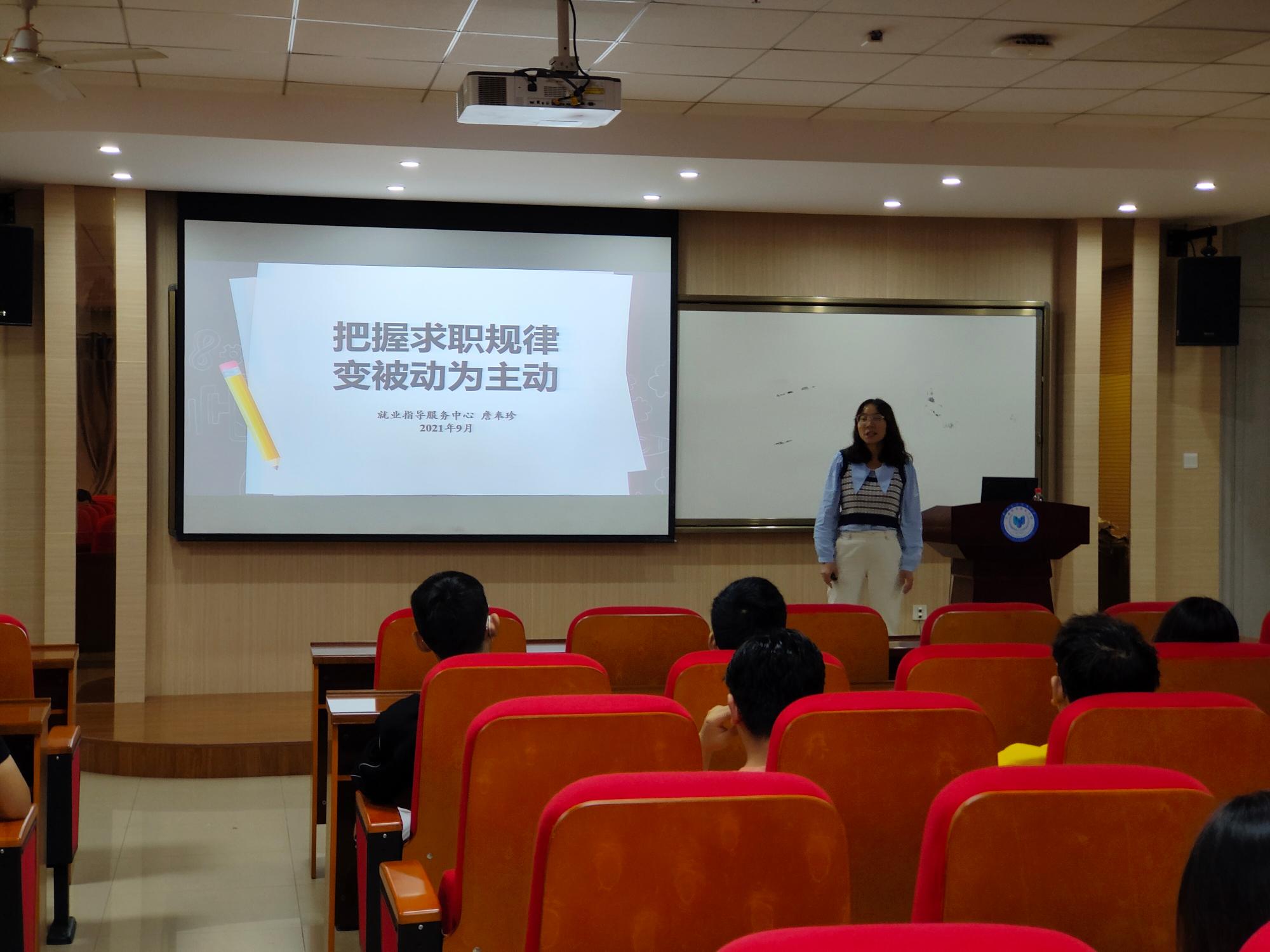 自党史学习教育开展以来,公司坚持把“我为群众办实事”作为党史学习教育的出发点和落脚点,本着“把好事办实、把实事办好、办到师生心坎上”的原则, 2021年9月24日下午,公司举办了“把握求职规律,变被动为主动”的求职攻略讲座,着力营造有利于员工就业的良好氛围,同时帮助员工全面了解当前全球新一轮科技革命和产业变革背景下,就业形势的多样化以及复杂化,助力员工高质量就业。此次讲座由公司本科生院研究生就业办公室主任詹奉珍老师主讲,公司党委副书记崔传贞、辅导员郭瑞、2018级本科生和2019级研究生参加了此次会议。