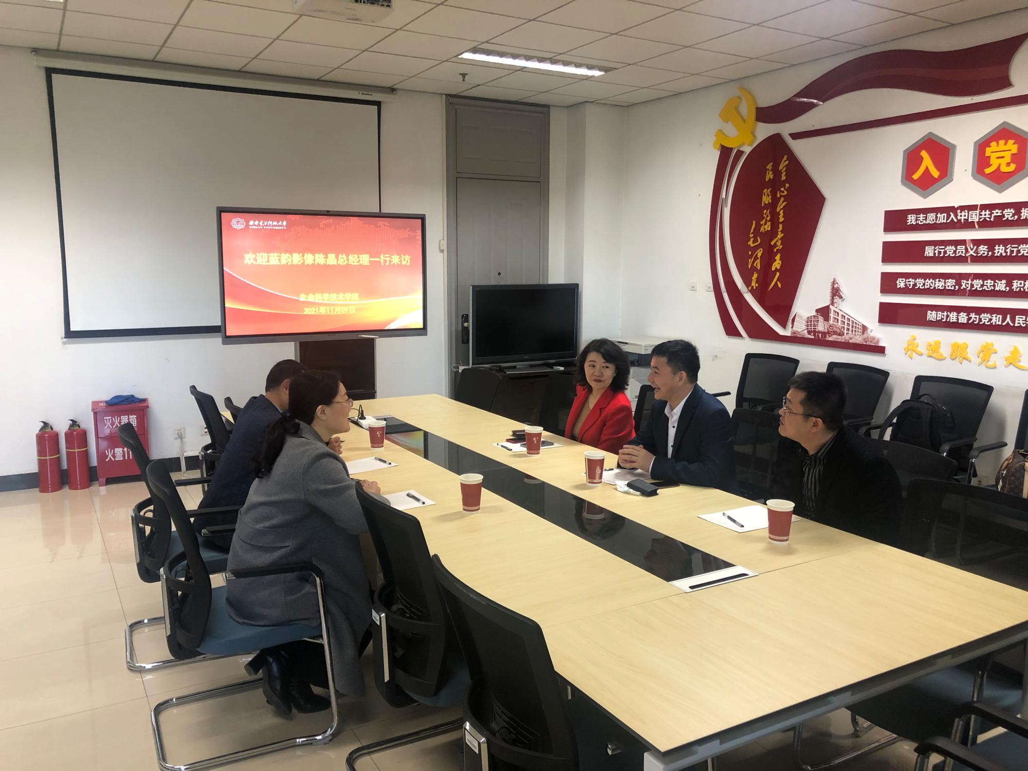 随后,朱守平对团队科研方向作出了详细介绍。郑杰介绍了蓝韵影像有限公司的情况及合作意向。双方对校企合作方式进行了积极探讨,就科研合作、人才培养、就业招聘等方面进行了深入交流。
