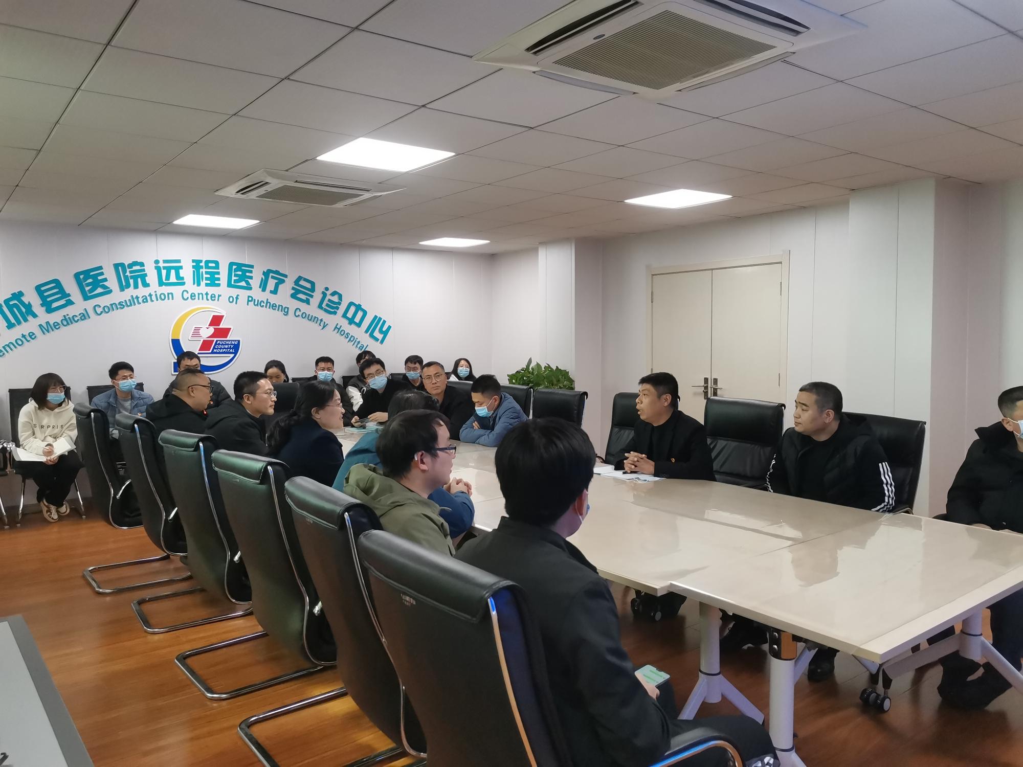 下午两点,公司师生来到蒲城县医院,就与医院开展多领域合作、加快科技成果转化等进行座谈交流。蒲城县医公司党委副书记李海鹏、副经理赵健以及医院相关科室主任医师参加了会议。