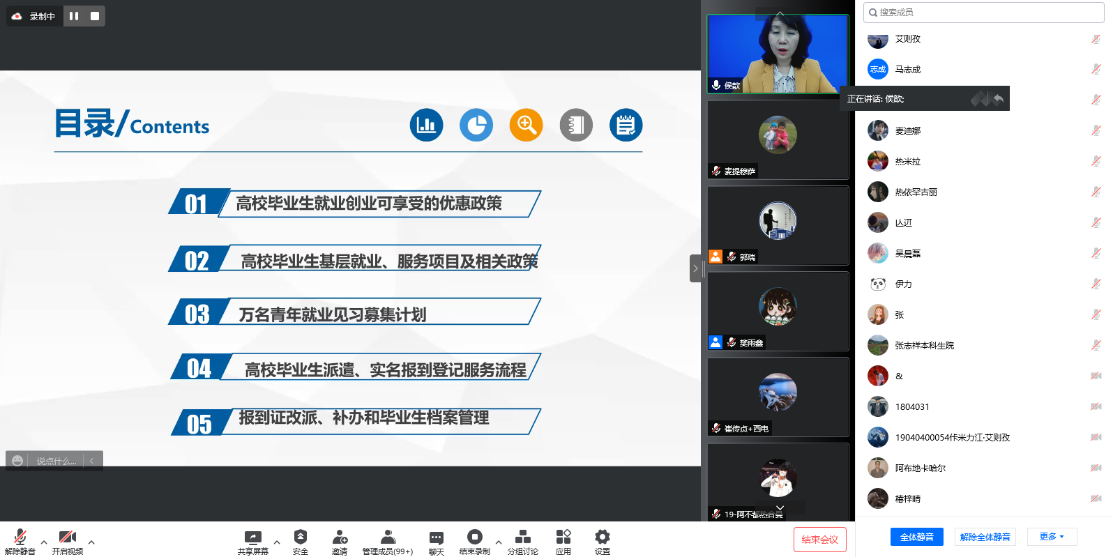 主讲人侯歆从高校毕业生就业创业可享受的优惠政策、高校毕业生基层就业政策、万名青年就业见习募集计划、高校毕业生派遣及实名报到登记服务流程、报到证改派及补办和毕业生档案管理五个方面进行了政策解读,鼓励新疆籍高校毕业生“先就业再择业”,积极参与“三支一扶”、老员工志愿服务西部计划等基层就业专门项目。她强调,只有了解国家就业政策,提前做好就业准备,利用好国家的优惠政策和扶持项目,才能实现“稳就业”、“好就业”,并欢迎西电毕业生来新疆建功立业,共同建设大美新疆。
