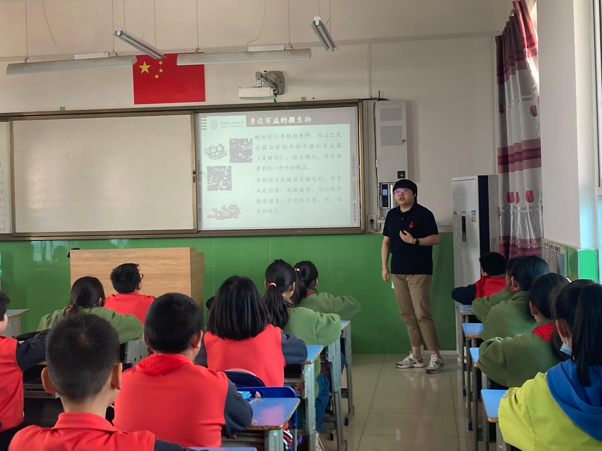 沈颖莉老师从生活中常见的酸奶入手,给同学们介绍了微生物的基本知识,以及现代生物技术与未来微生物的发展,激发了同学们的学习兴趣,在同学们的心里埋下了科学的种子。