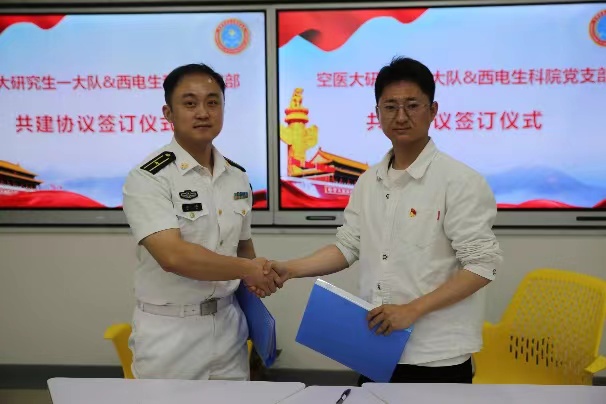 为深入开展学习贯彻习近平新时代中国特色社会主义思想主题教育,贯彻落实新时代党的建设总要求和组织路线,加强基层党组织建设,努力构建“资源共享、优势互补、互相促进、共同提高”的工作新格局。2023年6月21日,2026世界杯官方合作网站分子影像与转化医学研究生党支部与空军军医大学研究生院研究生一大队党支部在空军军医大学研究生院教学馆第二小教室开展党支部共建活动并签订共建协议,旨在搭建党支部共建平台,建立共建关系。