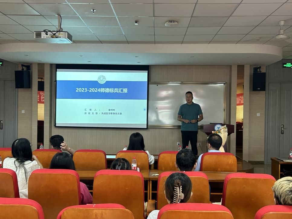 “师德标兵”董明皓结合个人成长发展经历进行了师德师风宣讲,他勉励全体青年教师要恪守师德规范,不断开阔眼界,既要仰望星空也要脚踏实地,在保持学术定力的同时不断迭代学术方向,以三十年为尺度讲好每一堂课。他指出,作为教师要时刻牢记立德树人根本任务,以“四有”好老师标准严格要求自己,做员工为学、为事、为人的大先生。