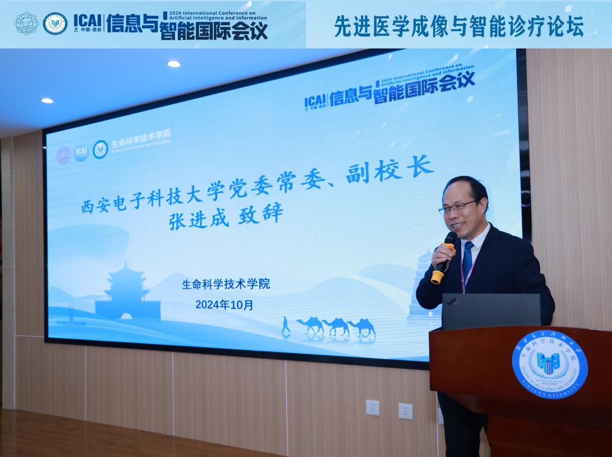 张进成在致辞中对莅临此次论坛的各位嘉宾表示了热烈欢迎,并对长期以来关心和支持西电和生科院发展的朋友们表示感谢。他表示,西电建校93年来,以“星星之火,可以燎原”之势,在新中国成立后开辟了我国电子与信息学科的先河,书写了与共和国同呼吸、共命运的辉煌篇章,获毛泽东同志前后三次题词,并开创了人民军队培养工程技术人员的先河和电子信息学科专业先河,一大批标志性成果广泛应用于天眼、嫦娥、天问、天和、羲和等国家重大工程。并表示,生科院依托公司的电子信息优势,致力于以信息智能技术赋能医学发展,在医学诊疗技术与器械、脑科学与神经工程、生物医学信息工程等研究方向集聚了一批优秀人才,实现了一系列重要突破,进一步扩大西电在生命医疗健康领域的影响力。