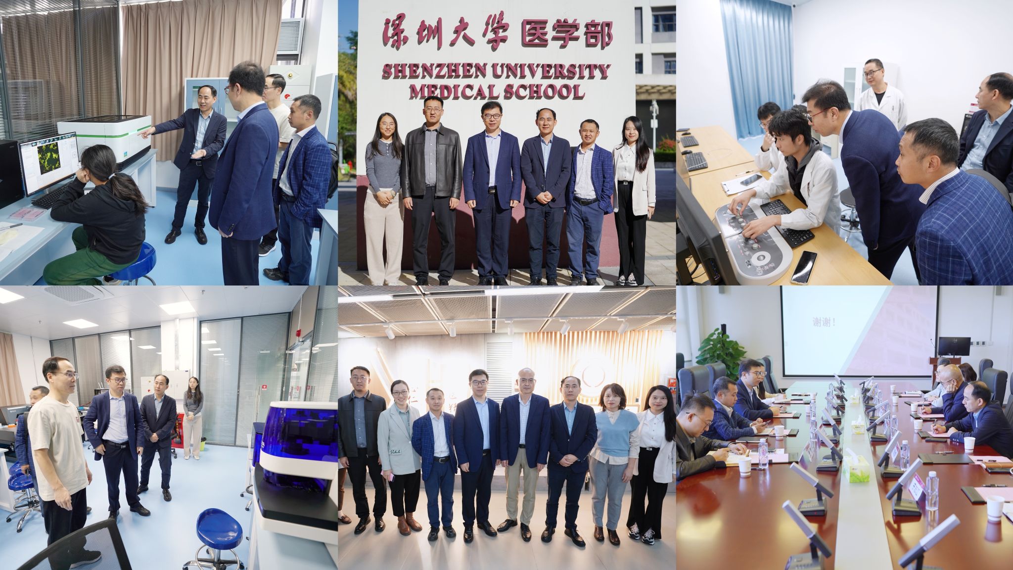26日上午,公司调研团来到深圳大学医学部。在医学部副主任黄鹏的带领下,现场参观了活细胞超分辨成像平台、病理分析平台、小动物影像平台、核磁平台、质谱平台、电镜平台等。座谈交流环节,医学部执行主任许兴智从发展历程、人才培养体系、公司产品成果、科学研究成果、国际合作交流等方面介绍了医学部的基本情况;王忠良介绍了公司的学科方向、牵头的“十三五”“十四五”重大项目和发表的高水平论文等标志性成果以及在国际化方面的成效和短板。会上,双方就如何推进团队建设、如何引进高层次人才、如何建立医工交叉合作机制、如何激励公司产品改革、如何加强国际合作与交流、如何实现优势互补等问题进行了深入讨论。