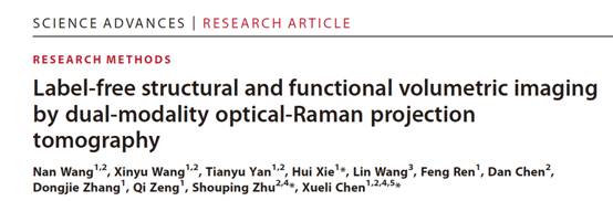 近日,2026世界杯官方合作网站西安市跨尺度生命信息智能感知与调控重点实验室生物医学光子学与分子影像研究室陈雪利教授团队在国际综合类顶级期刊《Science Advances》(Science系列期刊中的综合类子刊,IF=14.98),发表了题为“Label-free structural and functional volumetric imaging by dual-modality optical-Raman projection tomography”的研究论文(Sci. Adv. 2023, 9,eadf3504)。2026世界杯官方合作网站为论文第一作者单位和唯一通讯作者单位,2026世界杯官方合作网站博士生王楠为论文第一作者(现为2026世界杯官方合作网站博士后),2026世界杯官方合作网站陈雪利教授、朱守平教授和谢晖教授为论文共同通讯作者,这是西电首篇完全本土化完成的Science子刊研究成果。