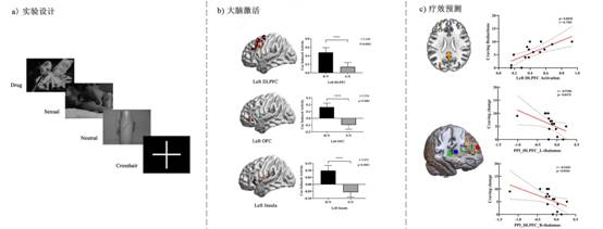图1 实验设计、大脑激活及疗效预测